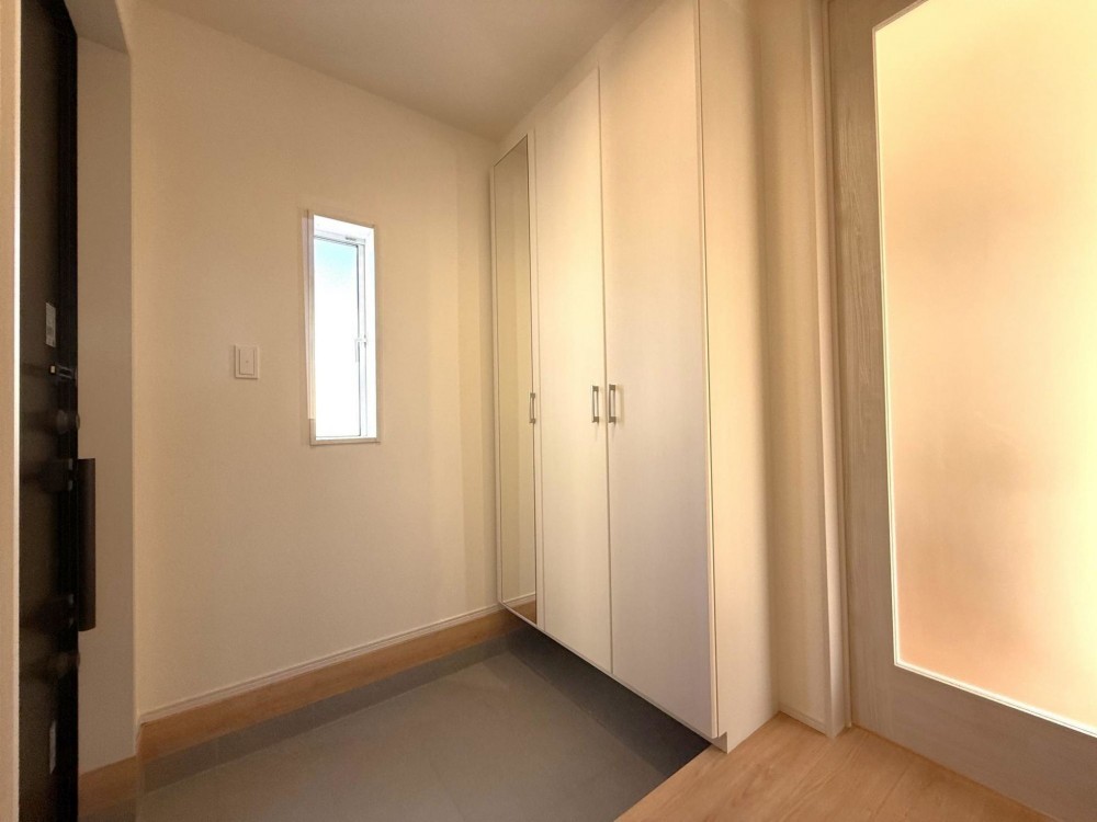 - 24時間換気システム、モニタ付インターホン、複層ガラス、システムキッチン、カウンターキッチン、食器洗浄乾燥機、浄水器、シャンプードレッサー、浴室乾燥機、洗浄便座、トイレ2箇所、床下収納、駐車場2台分、収納下駄箱、外水栓、火災報知器、Wロック電池錠、制震ダンパー、対面式キッチン、給湯器、断熱仕様玄関ドア、NURO 光、節水型トイレ、南面バルコニー、全室フローリング
