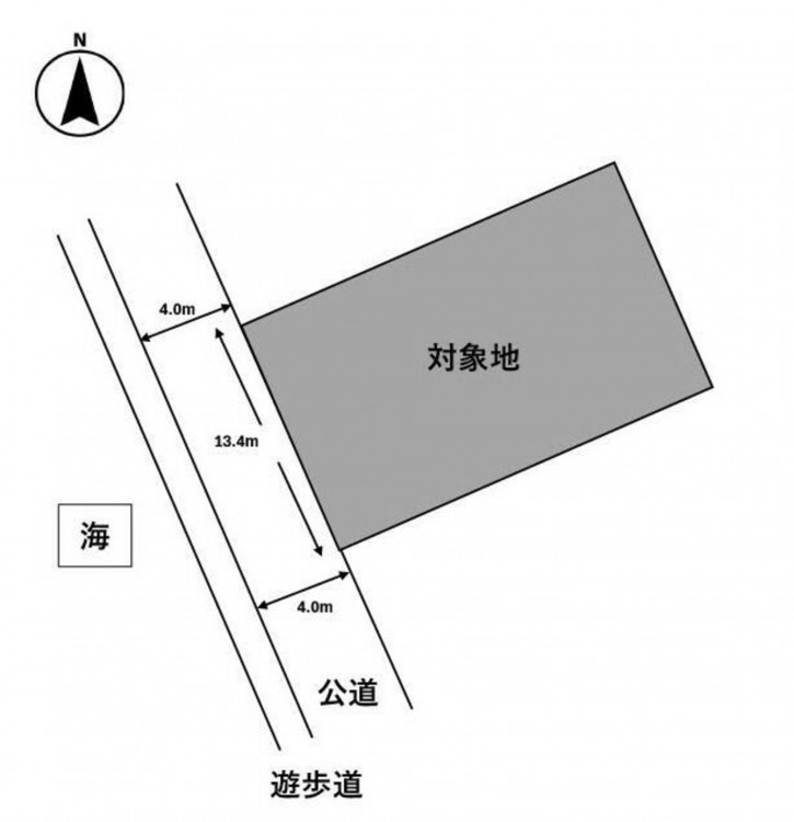- 南西側 公道4m 間口約13.4m