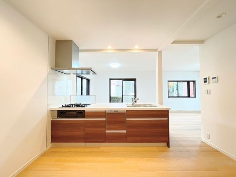 - モニタ付インターホン、システムキッチン、カウンターキッチン、浴室乾燥機、追い焚き、洗浄便座、床下収納、駐車場2台分、庭、全居室収納