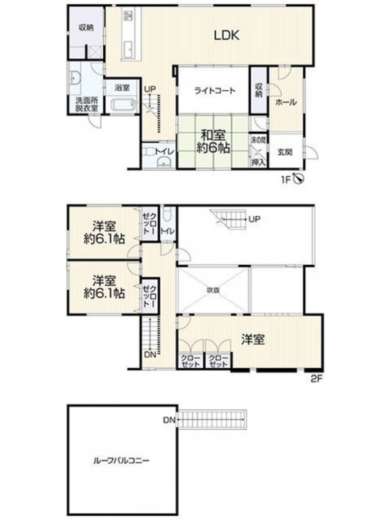 - モニタ付インターホン、システムキッチン、カウンターキッチン、食器洗浄乾燥機、浴室乾燥機、追い焚き、洗浄便座、トイレ2箇所、床下収納、駐車場2台分、吹き抜け、ディンプルキー、全居室収納、ルーフバルコニー