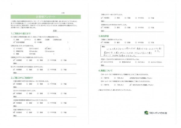 リフォーム工事が無事に完了し、ご満足いただけてとても嬉しく思います。